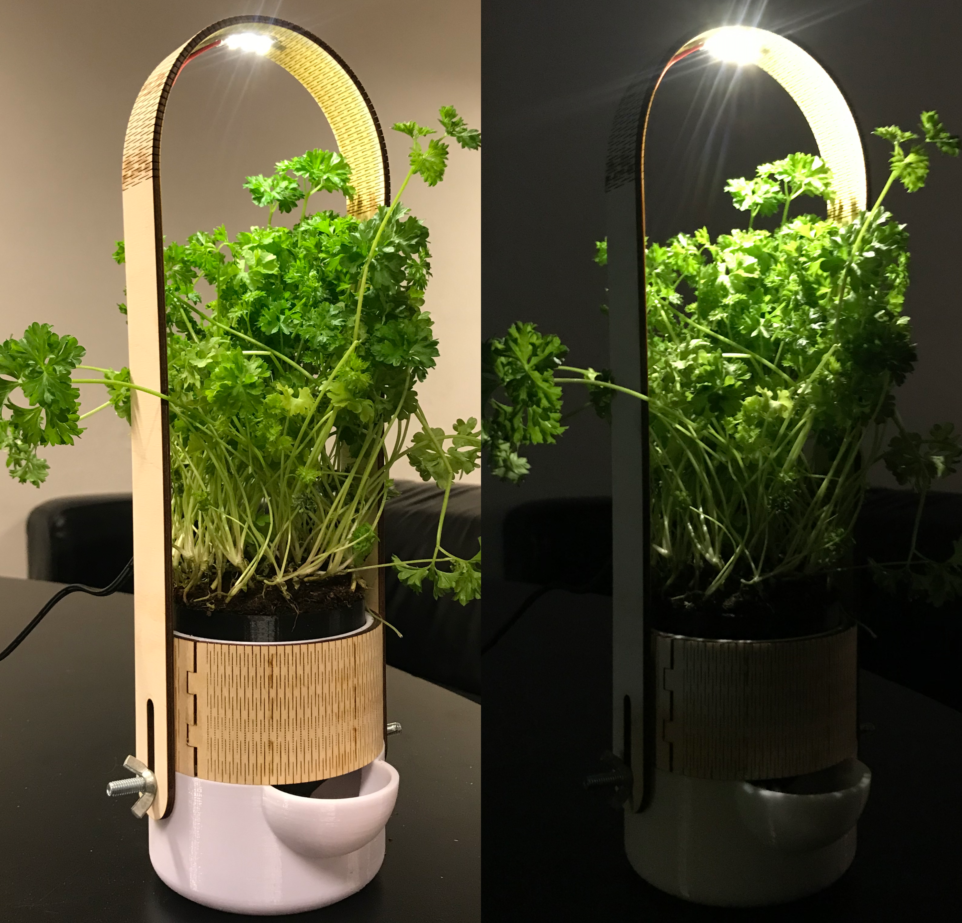 Minimalist Smart Planter with self-watering and LED-lighting.